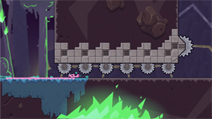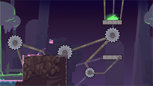 Each level consists of 100 carefully designed “chunks” that are placed together to create a level. Chunks are like little Meat Boy levels that are designed, decorated, and given a difficulty rating. Each time you beat a level, an increased difficulty criteria is used to generate the harder version of that level. Also, levels need to have a certain cadence to them so they don’t feel like just random stuff thrown at you. We’ve worked on a system that allows us to give a criteria of difficulty and pacing that makes the levels randomly, but still within the confines of what we want the levels to be presented as.